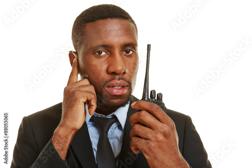 Mann vom Sicherheitsdienst mit Funkgerät