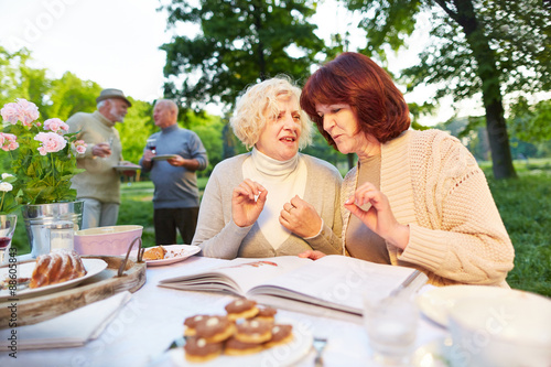 Senioren reden über Buch bei Feier