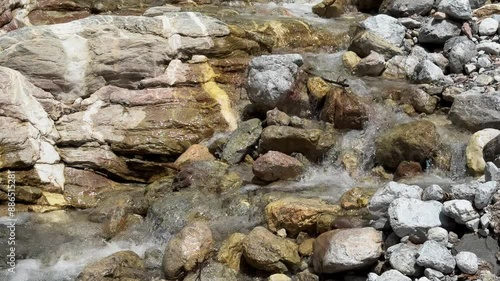 Water Flows Down Mountain Rocks In Austria