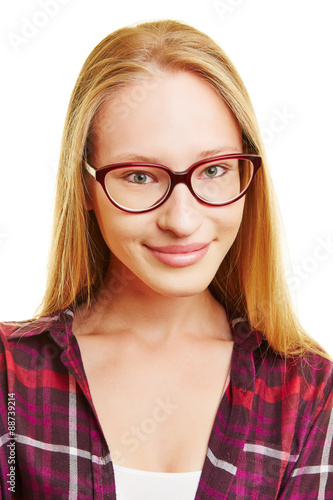 Junge Frau zu Weihnachten vor rotem Hintergrund