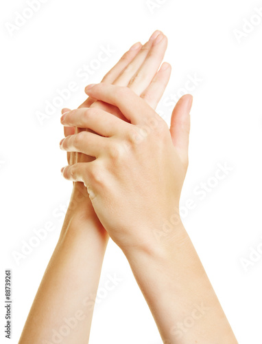 Hände cremen sich ein mit Feuchtigkeitscreme