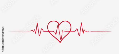 Stylish red line art of a heart intertwined with a heartbeat wave