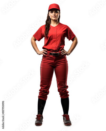 Full body portrait of friendly male baseball player in uniform standing confidently