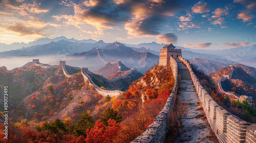 Breathtaking panoramic view of the Great Wall of China snaking over mountains