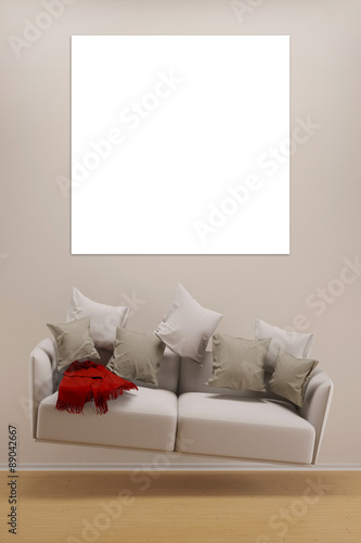 Rahmen im Wohnzimmer über schwebendem Sofa