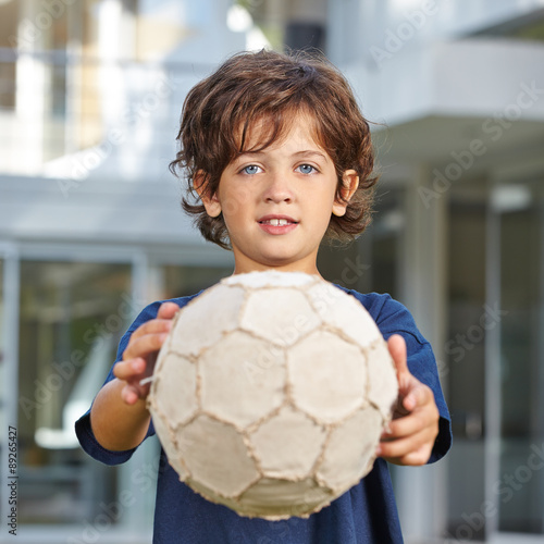 Kind hält Fußball nach vorne