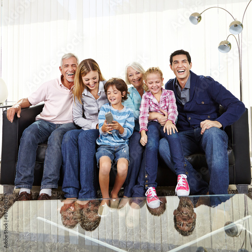 Familie und Kinder schauen Smart TV mit Fernbedienung
