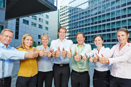 Gruppe Geschäftsleute hält Daumen hoch
