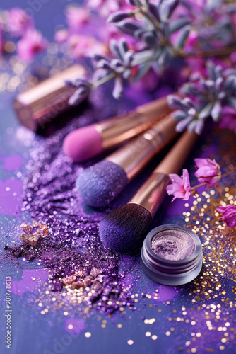 Elegant makeup brush set with glitter, sparkle and flowers