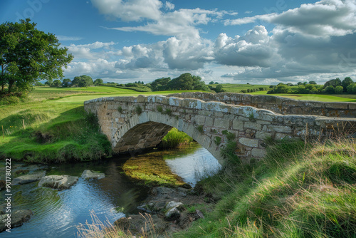 Bridge over Swilken Burn on a sunny day with blue skies