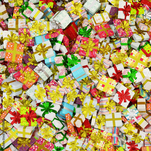 Hintergrund aus vielen Geschenken zu Weihnachten