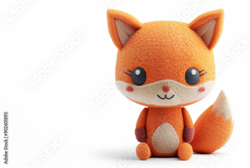 Cute peach felt fox plush toy with big eyes and a smiling mouth