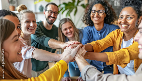 Gruppe Freunde als Startup Team beim Hände stapeln