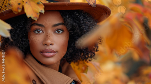 Stylish Black woman enjoying vibrant autumn colors in a trendy outfit