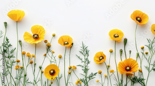 Elegant watercolor floral border with wildflowers on white background