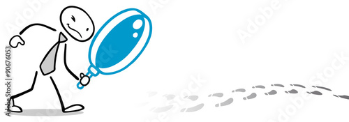 Cartoon Geschäftsmann mit riesiger Lupe sucht Lösung