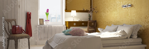 Panorama vom Schlafzimmer einer Frau