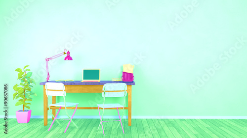 Schreibtisch im Home Office in bunt