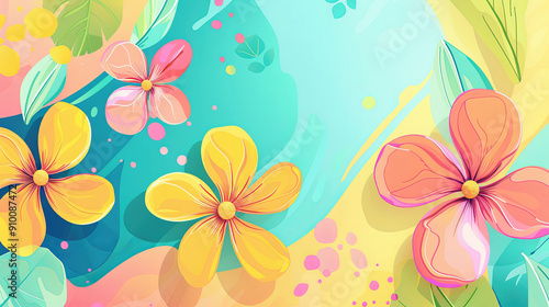 Intricate seamless pattern featuring colorful flowers and leaves on white background