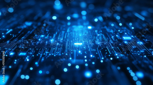 Blue microchip on computer motherboard as digital background (Generative AI)