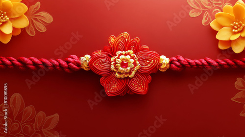 Beautiful Raksha Bandhan festival background with traditional rakhi and floral designs