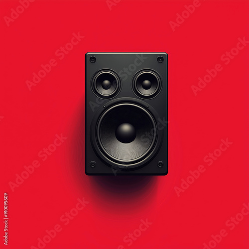 Stylized minimalist image of black bass speakers on a vibrant red background