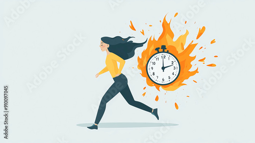 Illustration of a person holding a large alarm clock. Concept of time management and urgency