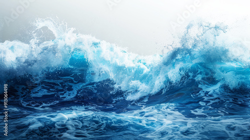 Dynamic blue wave splashing with white background emphasizing motion and energy