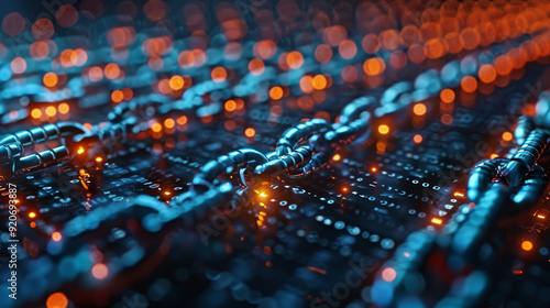 Digital chain representing blockchain technology in global finance and cryptocurrency with data connections