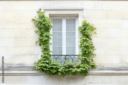 Abandoned building overgrown with vines in a sunny outdoor setting