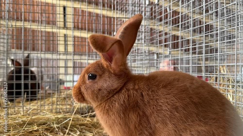 Cute Brown Rabbit in a Cage