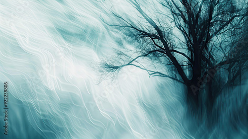 Abstract tonalism style art with winter colors and silhouette of a tree
