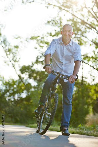 Aktive Seniorin mit Fahrrad oder Tretroller