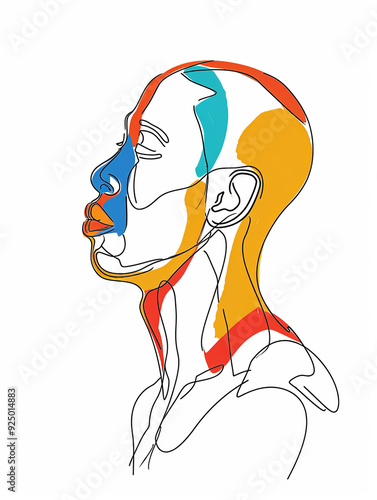 Artistic line drawing of serene African male in forties with colorful abstract accents