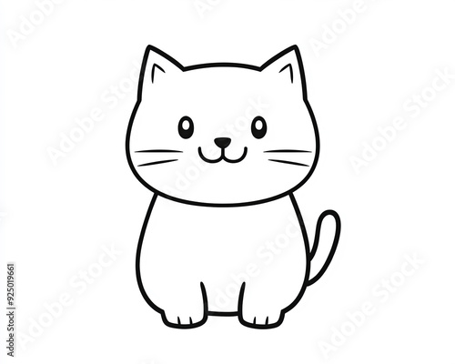 Adorable kawaii cat illustration in minimalist style on a white background for children's coloring books and creative activities