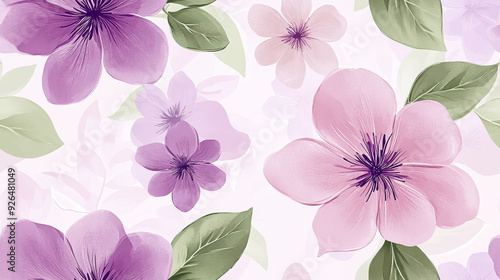 Seamless tilable image with delicate floral patterns of intricate petals and leaves