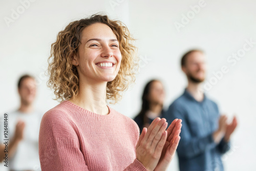 Group of smiling friends holding hands in a cheerful and joyful circle