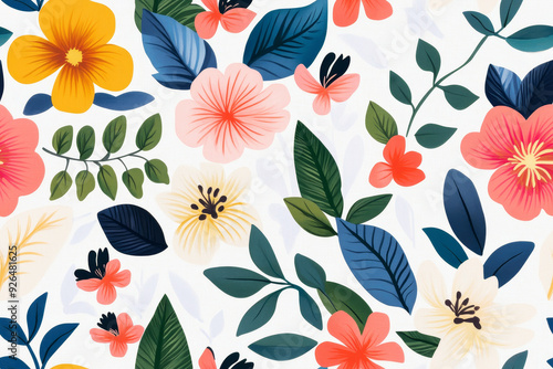 Vibrant seamless floral pattern with bold colorful flowers and leaves