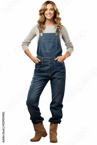 Friendly female lumberjack in a full-body shot wearing work attire and smiling confidently