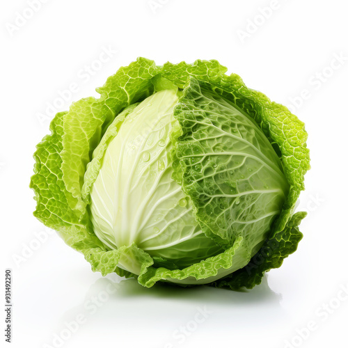PNG close-up of a vibrant green fresh cabbage with detailed leaf texture
