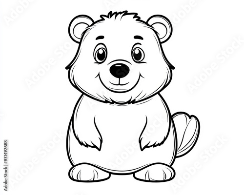 Minimalist kawaii beaver illustration on white background for children's coloring books, featuring a simplistic and adorable animal design.