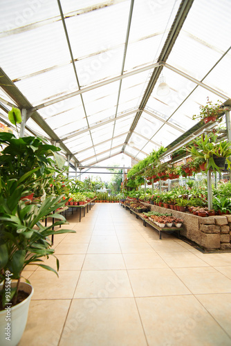 Gärtner sitzt zwischen Pflanzen im Gewächshaus