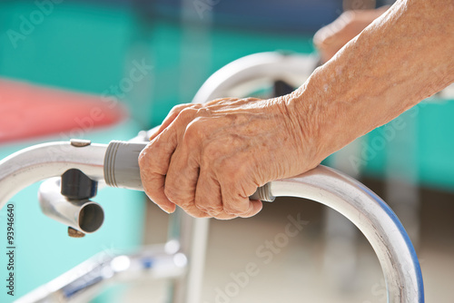 Mann im Rollstuhl trainiert Hand nach Schlaganfall