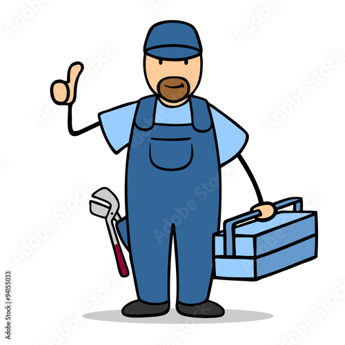 Mann als Klempner hält Daumen hoch