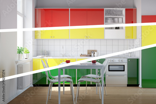 Küchenzeile in Küche in drei Farben