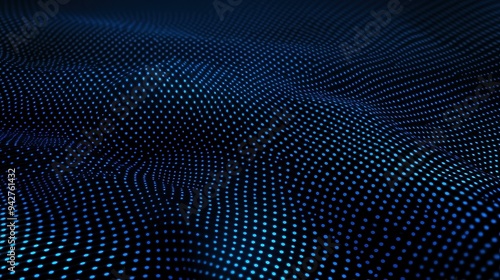 Wavy blue halftone pattern creating a flowing digital landscape with dotted grid on a blue background