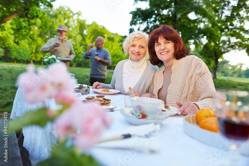 Senioren feiern Geburtstag mit Kuchen und Wein