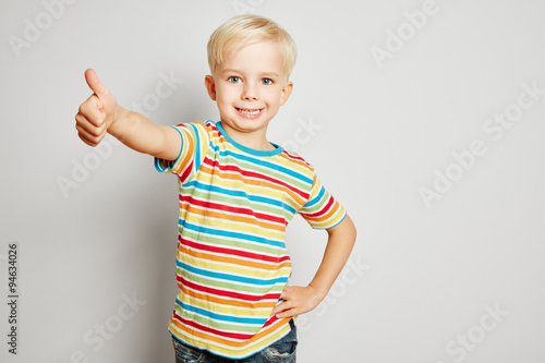 Lachendes Kind hält beide Daumen hoch
