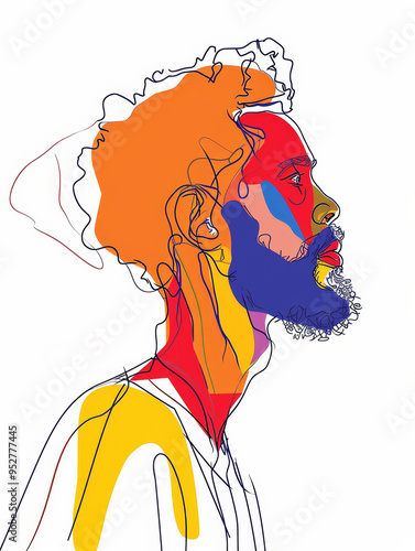 Colorful line drawing of a surprised African American man in profile view
