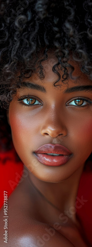 Extreme close-up of a beautiful African female model with intense gaze and natural beauty
